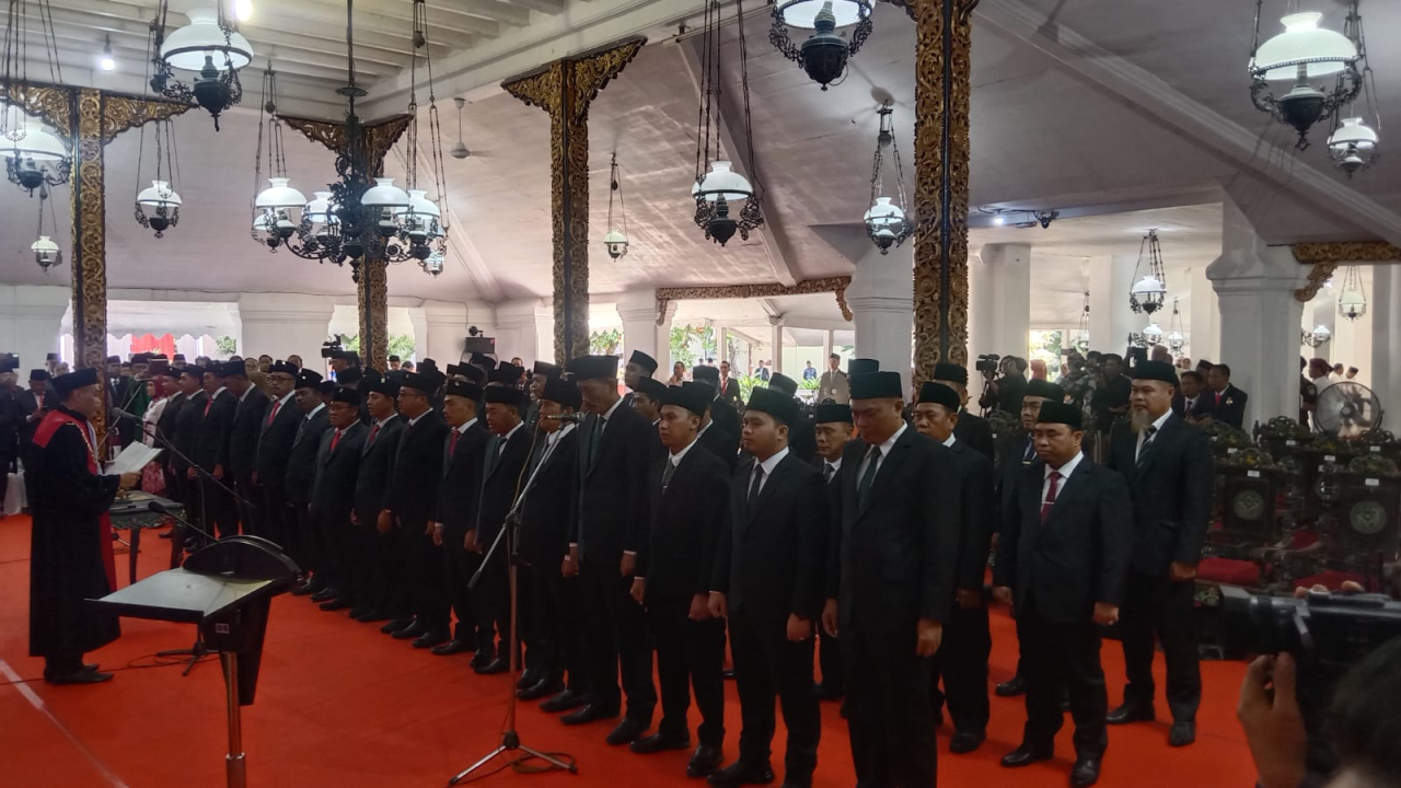 SURABAYAPAGI.COM, Sumenep - Sebanyak 50 anggota Dewan Perwakilan Rakyat Daerah (DPRD) Kabupaten Sumenep periode 2024-2029 hasil Pemilu Legislatif 2024 dilantik dan diambil sumpah janji di Pendopo Agung Keraton Sumenep,Madura Jawa Timur, Rabu (21/08/2024).