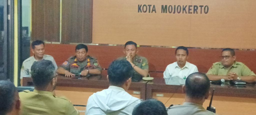 Rapat yang digelar di aula Kantor Satpol PP ini dipimpin Kasatpol PP Modjari dan dihadiri Kasi Intel Kejari Kota Mojokerto Joko Sutrisno, Kasi Pengendalian dan Penanganan Sengketa BPN Kota Mojokerto Tumisah, serta perwakilan dari Kodim, Polresta, Bagian Hukum, Kantor Kecamatan dan Kelurahan Kranggan.