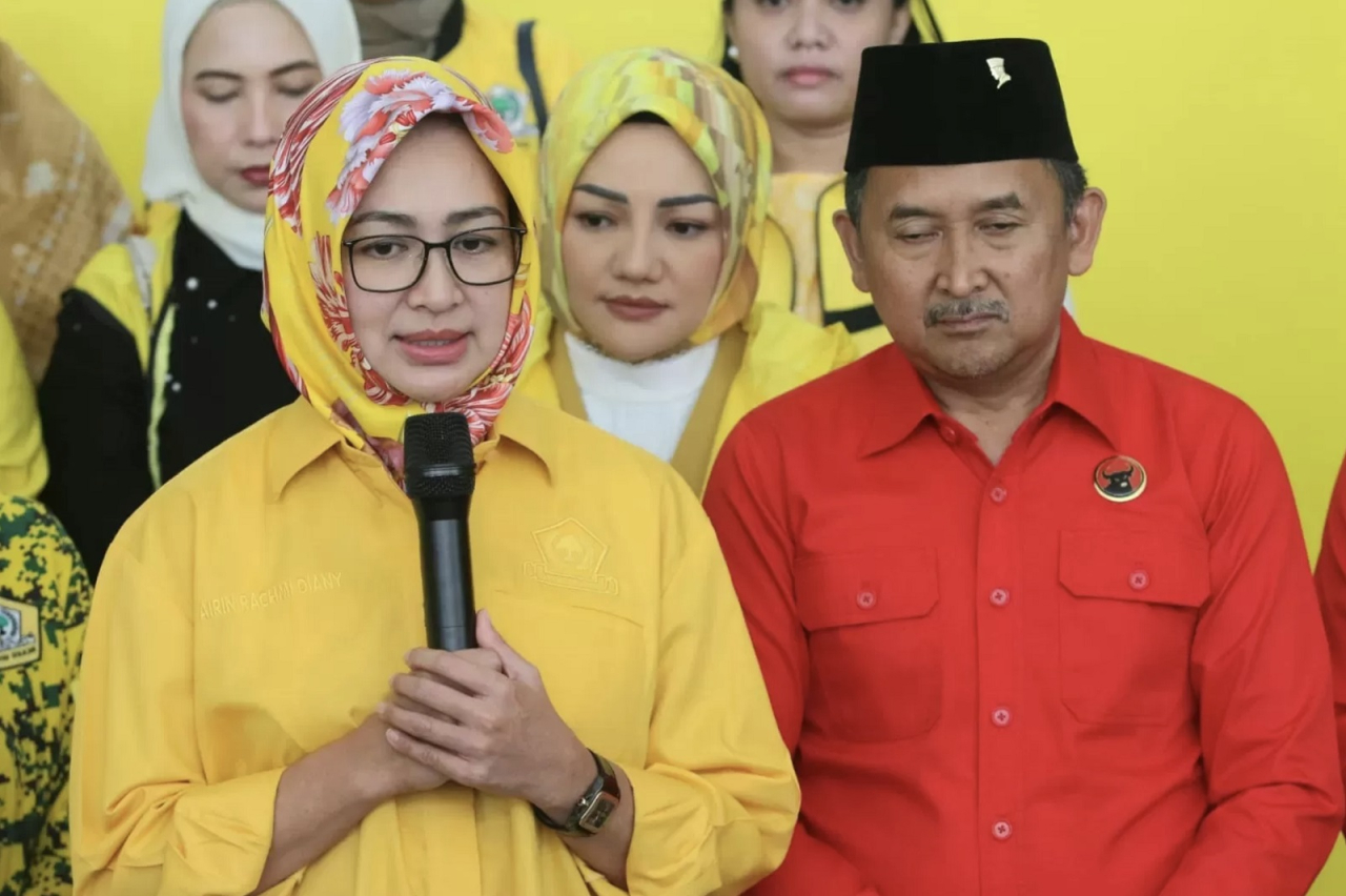 SURABAYAPAGI.COM, Jakarta - Airin Rachmi Diany, setelah dipuji Ketua Umum PDIP Megawati Soekarnoputri, diterima Ketua Umum Golkar Bahlil Lahadalia maju Pilgub Banten dari Partai Golkar.