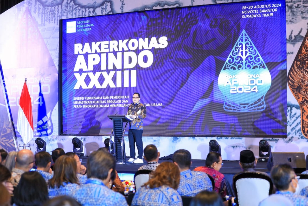 SURABAYAPAGI.COM, Surabaya - Penjabat (Pj.) Gubernur Jawa Timur Adhy Karyono menghadiri Rapat Kerja dan Konsultasi Nasional (Rakerkonas) Asosiasi Pengusaha Indonesia (APINDO) ke-33 yang digelar di Hotel Novotel Samator Surabaya, Kamis (29/8).