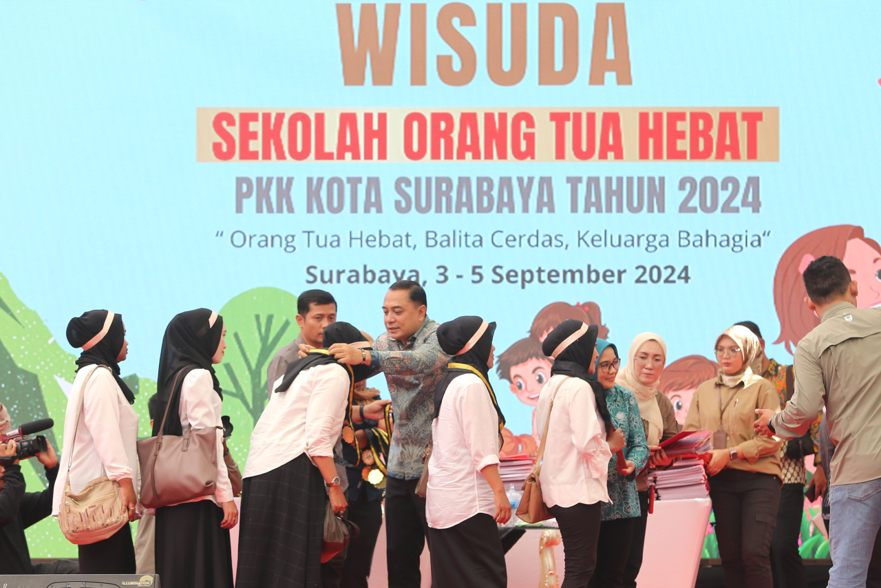 "Pemimpin hebat lahir dari seorang wanita penuh akidah Akhlakul Karimah yang hari ini mengikuti wisuda SOTH. Karena orang tua memiliki peran besar untuk membuat anak-anaknya kelak menjadi pemimpin, baik itu pemimpin Kota Surabaya bahkan Indonesia," kata Wali Kota Eri.