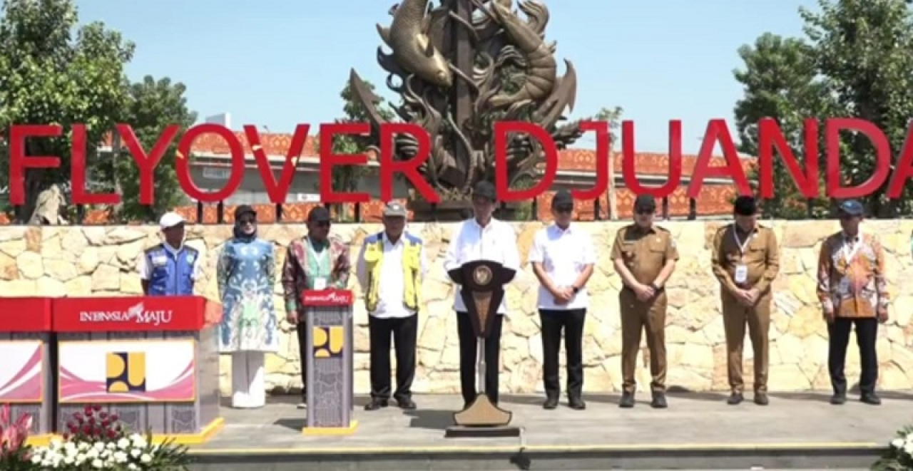 "Dengan mengucap bismillahirrahmanirrahim, Flyover Djuanda, 9 jembatan Callender Hamilton, dan pelaksanaan Inpres jalan di provinsi Jatim pagi ini saya nyatakan diresmikan," ungkap mantan wali kota Solo itu.