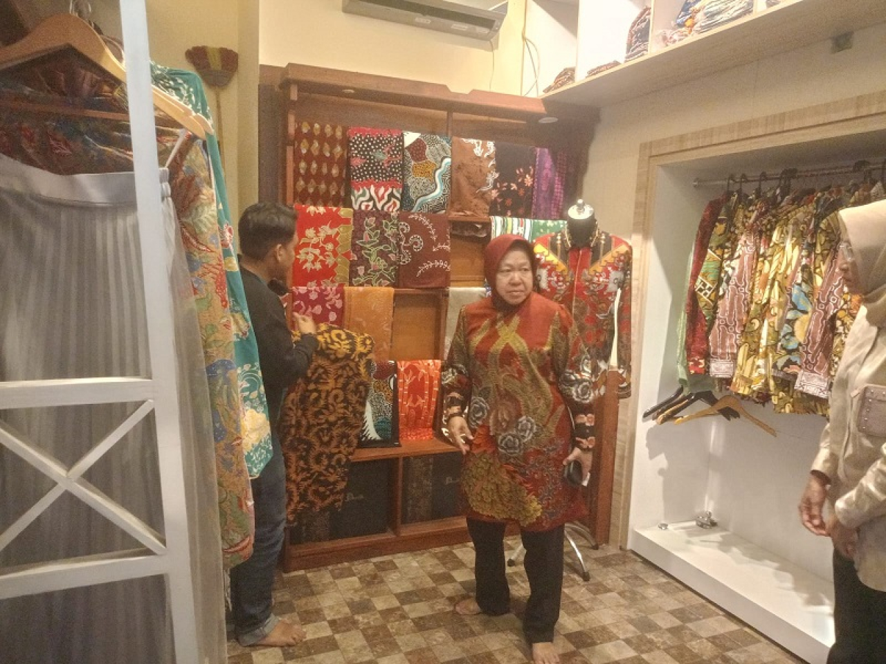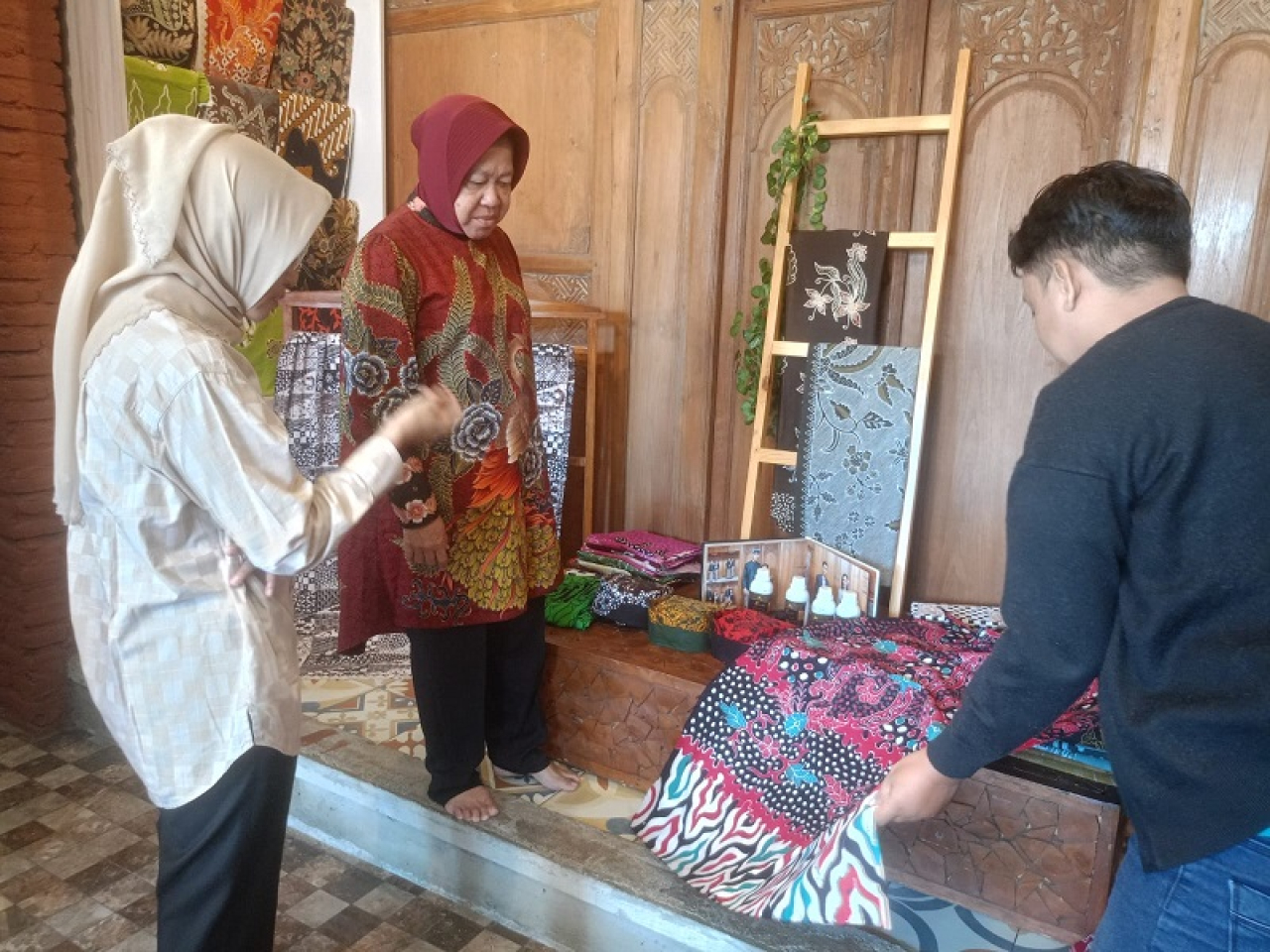 Selain di Oseng Dheles, Risma juga berkunjung ke pengrajin batik Gajah Oling, di mana ia membeli beberapa potong kain dan baju batik. Risma mengungkapkan, kain dan baju batik ini akan menjadi oleh-oleh bagi keluarga dan kerabatnya.