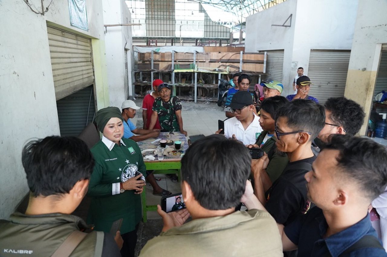 Di lokasi Puspa Agro Ning Luluk menyempatkan diri untuk melihat kondisi bangunan serta sedikit berbincang-bincang dengan para pedagang di Puspa Agro.