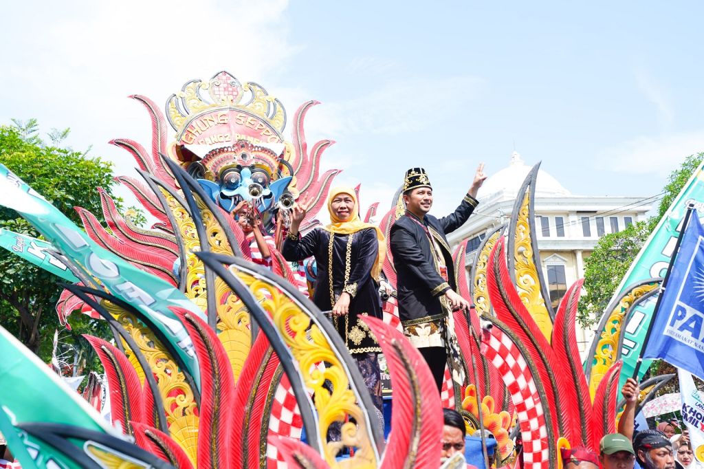 Khofifah-Emil datang dengan mengenakan pakaian adat Jawa khas Majapahit. Keduanya menaiki kendaraan Ul Daul khas Madura dengan iringan musik Tong-tong khas Sumenep. Selain itu, ada musik patrol hingga musik rebana. rko