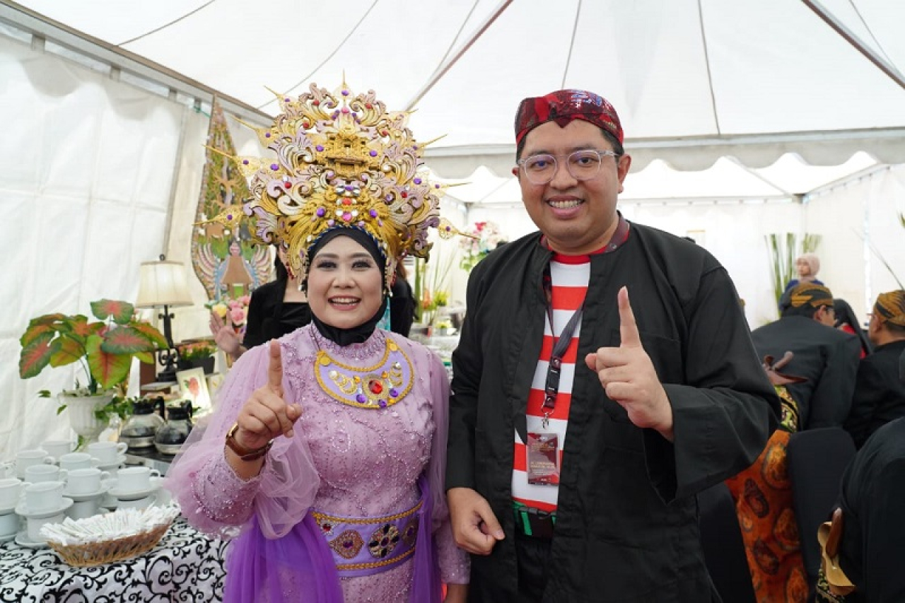 Luluk-Lukman hadir dan tampil percaya diri dalam acara itu. Dia memakai busana ala Ratu Majapahit Kencono Wungu, lengkap dengan mahkota besar dikepalanya.