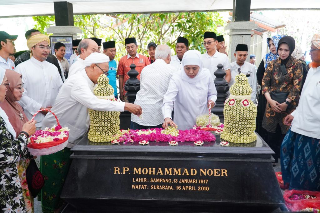 Begitu sampai di makam, Khofifah bersama para kiai Sampang, tokoh relawan pendukung Khofifah-Emil Sampang segera melakukan doa bersama, berkirim doa untuk Gubernur M Noer. Khofifah tampak penuh khidmat termasuk saat menabur bunga di atas pusara Gubernur M Noer.