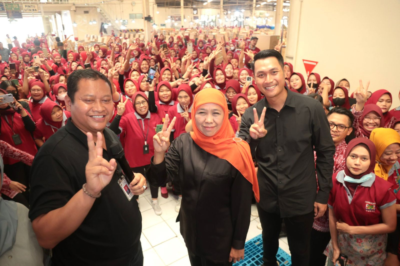 “Beliau terus membela SKT kita. Setiap tahun beliau selalu bersurat ke Presiden agar cukai rokok sigaret kretek tangan tidak naik,” ujarnya, disambut terikan dukungan para pekerja untuk Khofifah-Emil.