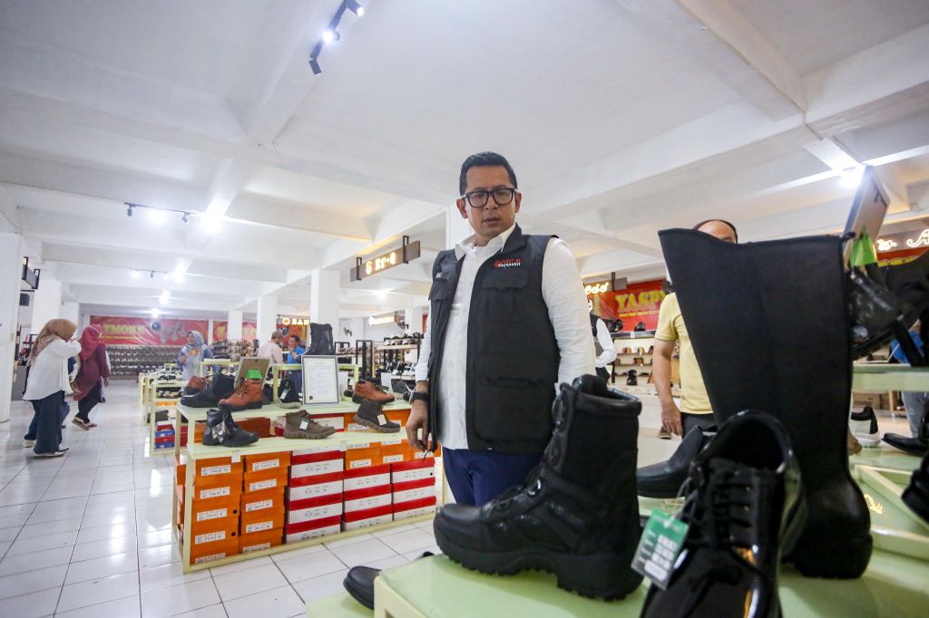 Didampingi Sekdakot Gaguk Tri Prasetyo dan Kepala Diskopukmperindag Ani Wijaya, Pj Wali Kota membeli beberapa pasang sepatu boots berwarna coklat dan sepatu kasual.