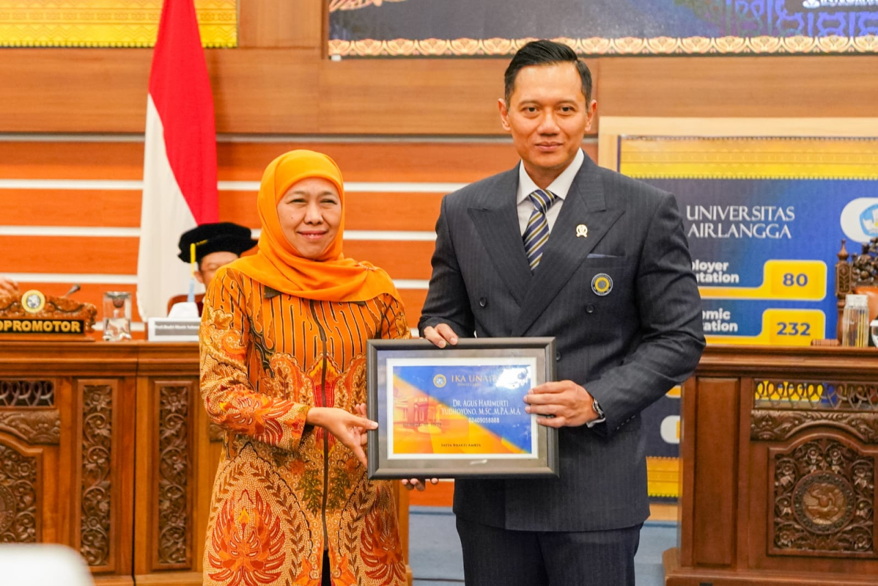 Lebih lanjut wanita yang juga Gubernur Jawa Timur periode 2019-2024 ini menegaskan bahwa pihaknya beserta seluruh keluarga besar IKA Unair menyambut bahagia dan bangga bergabungnya AHY sebagai alumnus Universitas Airlangga.
