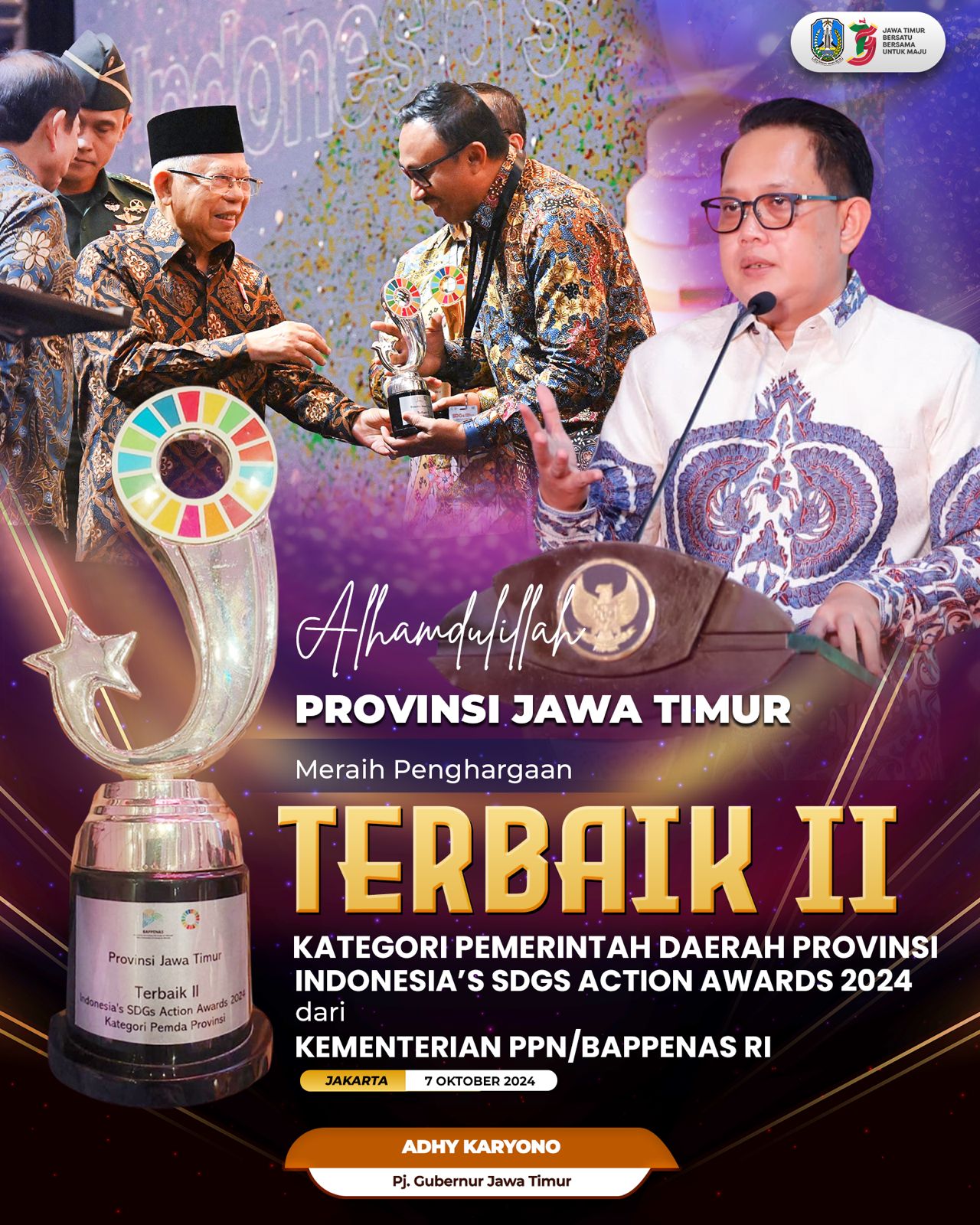 "Jadi memang apa yang kita lakukan selama ini telah sejalan dengan cita-cita SDGs. Alhamdulillah, saya pikir kita memang layak untuk mendapatkan gelar juara ini," imbuh Pj. Gubernur Adhy.