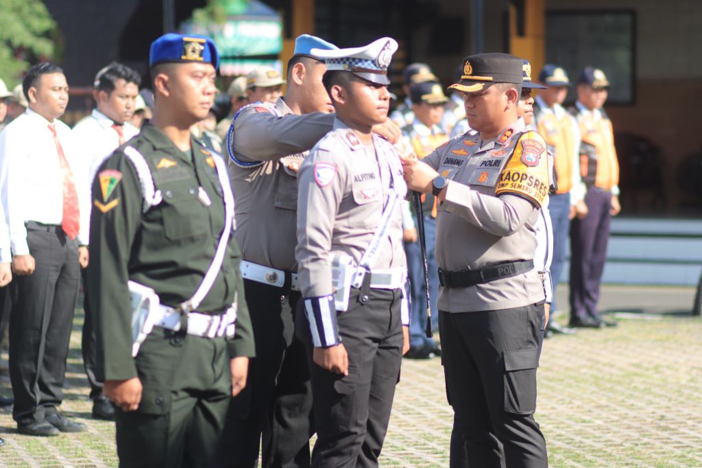 Gelar pasukan yang diikuti seluruh jajaran anggota Satuan Polres Blitar Kota, termasuk dari CPM, Dinas Perhubungan dan Satpol PP Kota Blitar.