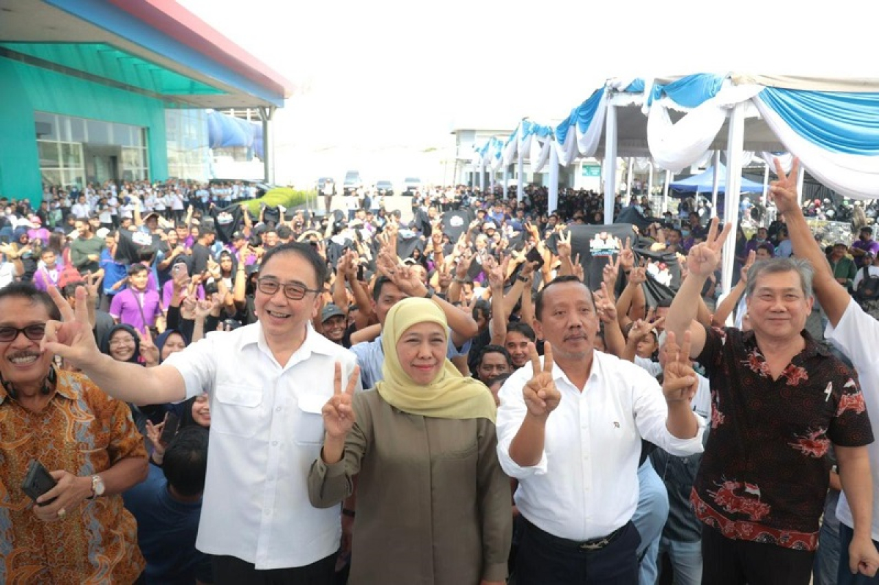 Sementara itu Dirut PT Jasuindo Tiga Perkasa Alan Wibisono menyampaikan terima kasih pada Khofifah Indar Parawansa yang saat memimpin Jatim di periode pertama mampu mewujudkan iklim usaha yang aman dan kondusif.