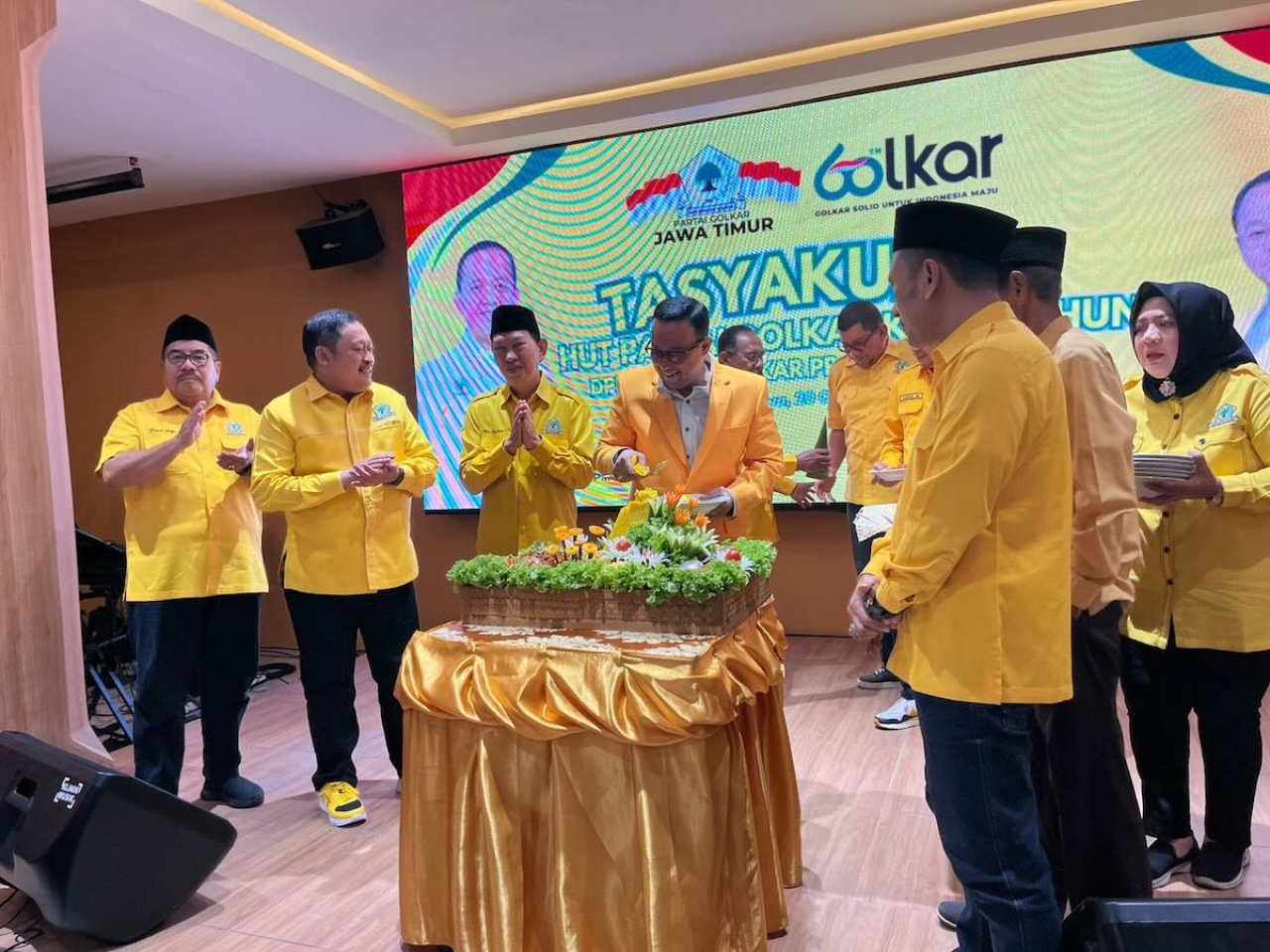 Kemudian disusul dengan tasyakuran sebagai wujud 60 tahun berdiri, dan posisinya selalu menghasilkan pemilu yang luar biasa,” papar Heri Sugihono.