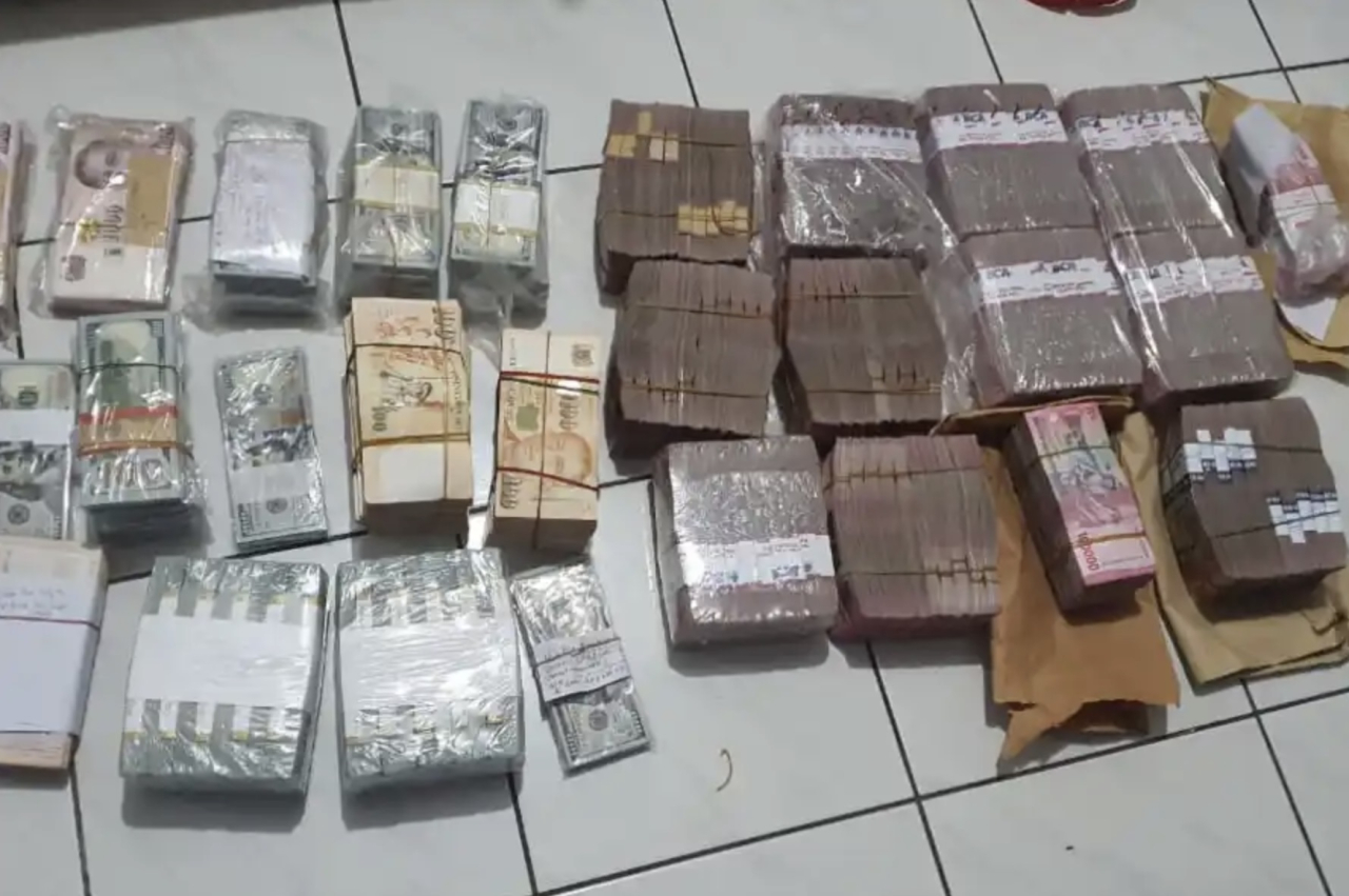 Catatan itu tampak ditulis tangan dengan bolpoin. Gepokan uang dolar AS itu kemudian diletakkan di lantai bersama gepokan uang pecahan Rp 100 ribu di sebuah tas jinjing merah yang juga ditemukan jaksa. n jk/erc/de/rmc