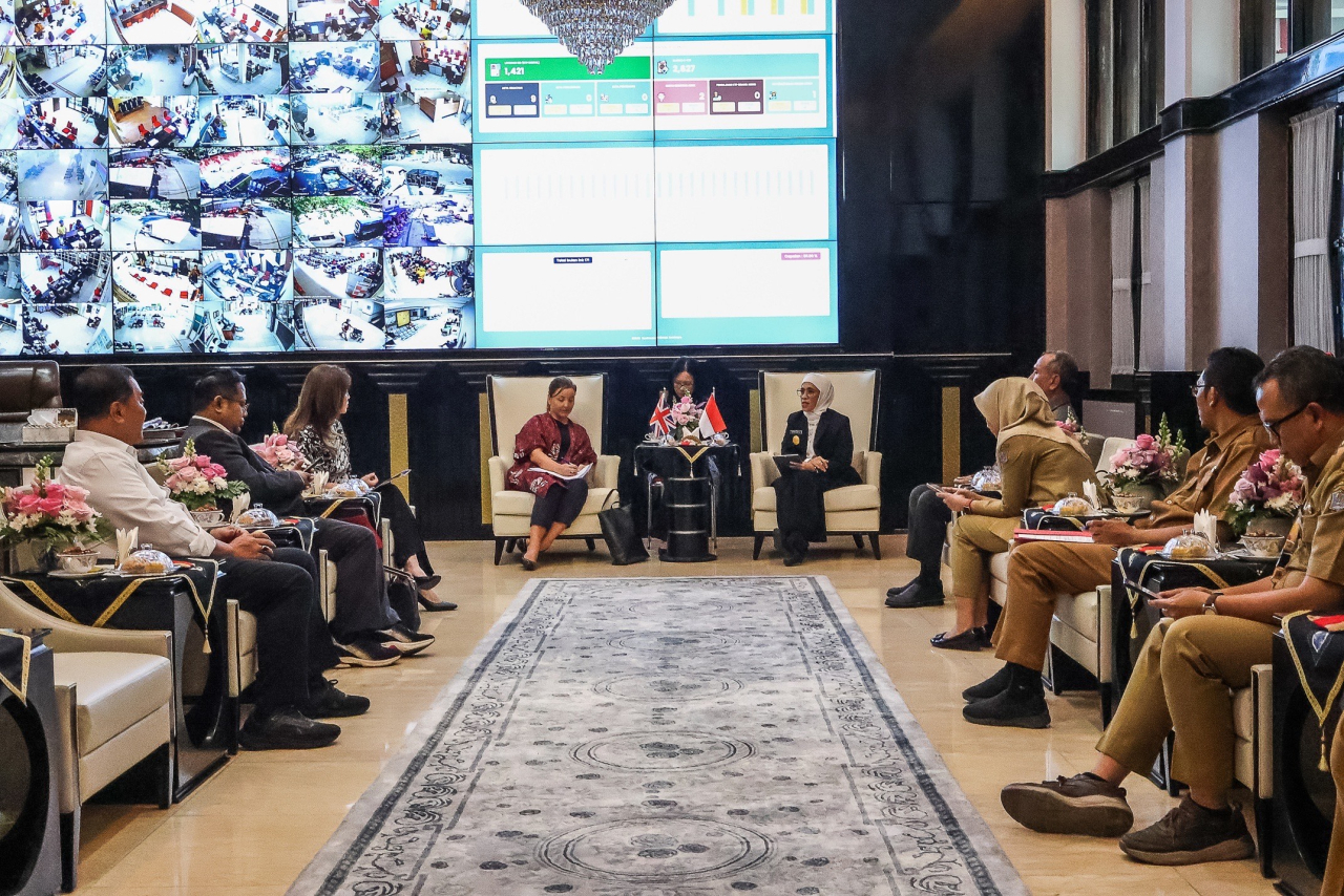 SURABAYAPGI, Surabaya - Penjabat sementara (PJs) Wali Kota Surabaya Restu Novi Widiani, menyambut kunjungan Wakil Kepala Kota Kedua Kedutaan Besar Inggris di Jakarta, Juliana Richter di ruang kerja wali kota, Senin, (28/10). Dalam kunjungan kali ini, PJs Wali Kota Surabaya Restu Novi membicarakan berbagai hal, salah satunya adalah kelanjutan kerjasama Sister City antara Kota Surabaya dengan Liverpool, United Kingdom (UK).