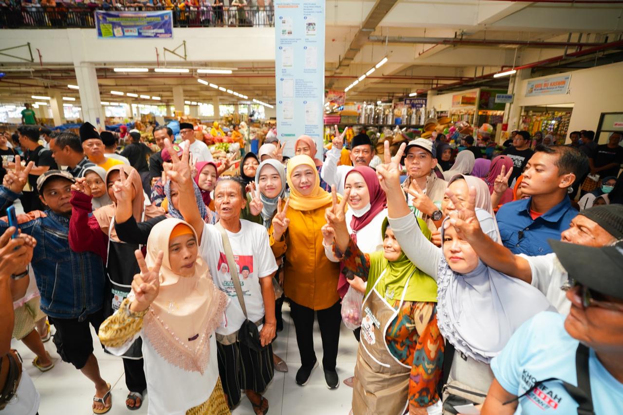 “Terima kasih atas dukungan dan sambutan yang luar biasa pada kedatangan kami di sini. Bersapa dengan pedagang di pasar, banyak menerima dukungan dan doa, memberi suntikan semangat luar biasa bagi perjuangan kami,” tegas Khofifah.