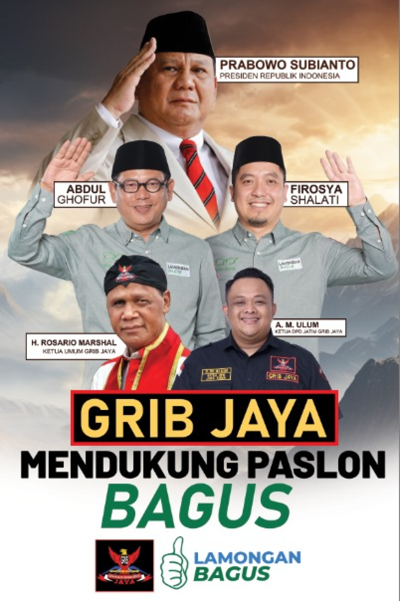 Bro Sosa juga menekankan komitmen Paslon Bagus untuk membangun Lamongan bersama GRIB Jaya. "Kami berkomitmen untuk membangun Lamongan menjadi kabupaten yang Baldhatun Thoyyibatun wa Robbun Ghofur. Apalagi GRIB Jaya adalah ormas yang didirikan langsung oleh Pak H. Jenderal (Purn) Prabowo Subianto," tandasnya.