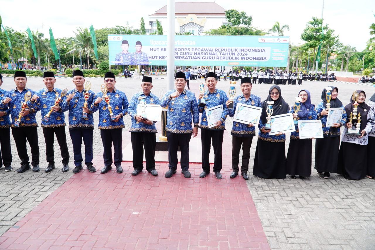 Hal itu disampaikan oleh bupati Yuhronur Efendi, saat menggelar upacara peringatan Hari Guru Nasional (HGN) 2024, HUT Korps Pegawai Republik Indonesia (Korpri) ke 53, dan HUT Persatuan Guru Republik Indonesia (PGRI) ke 79, Jum'at (29/11/2024) di Alun-alun setempat.