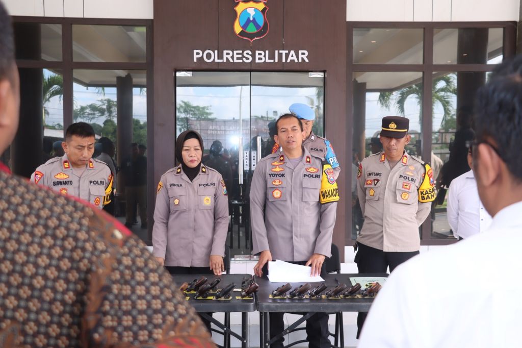 Kegiatan pemeriksaan senpi berlangsung pada Senin (30/12) di halaman Mapolres Blitar dipimpin langsung oleh Kompol Yoyok selaku Wakapolres Blitar didampingi oleh seluruh tim pemeriksa dari Satuan Propam