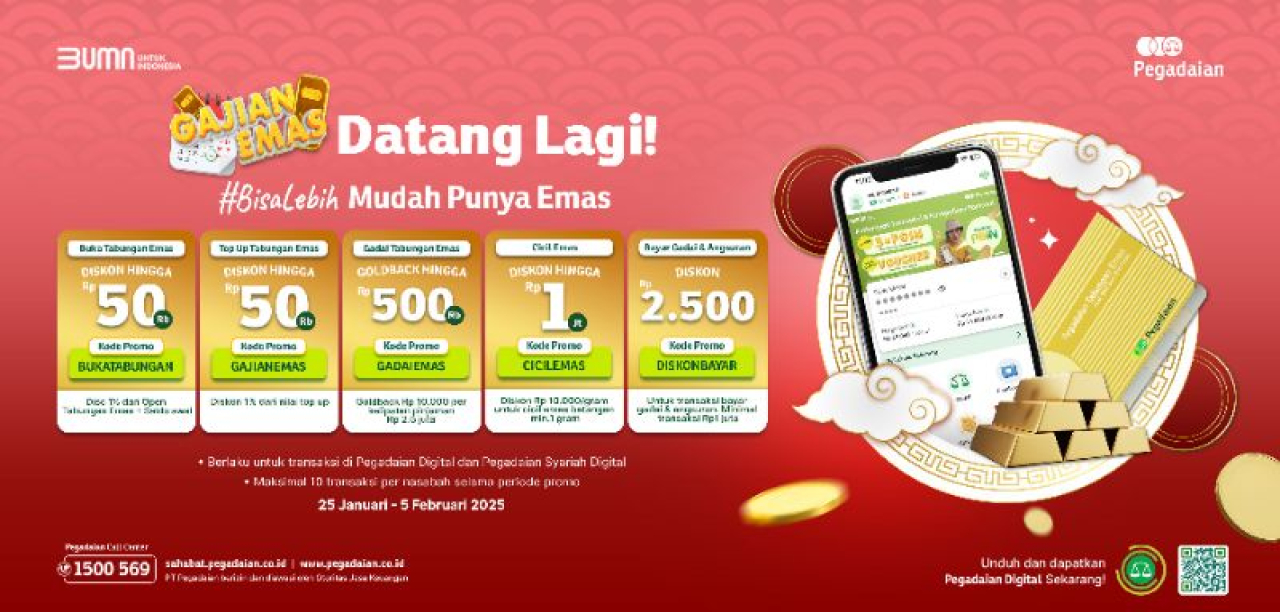 Berikut detail promo Gajian Emas Pegadaian periode 25 Januari hingga 5 Februari 2025;