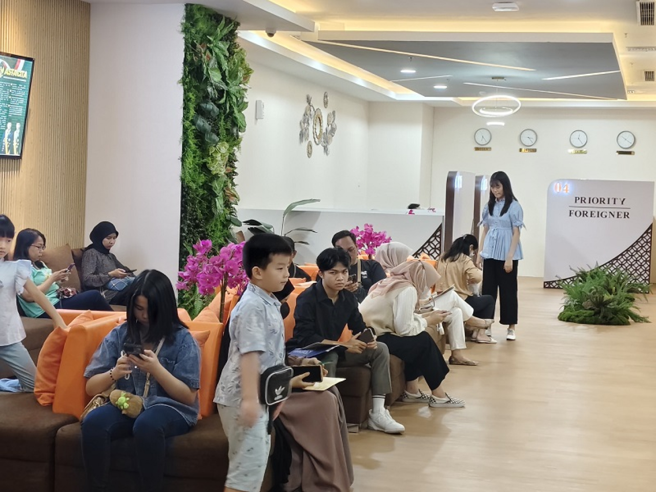 "Pemohon bisa menikmati sofa yang nyaman, akses internet gratis, serta snack dan kopi yang bisa dinikmati sembari menunggu nomor antrian dipanggil," tambah Agus.