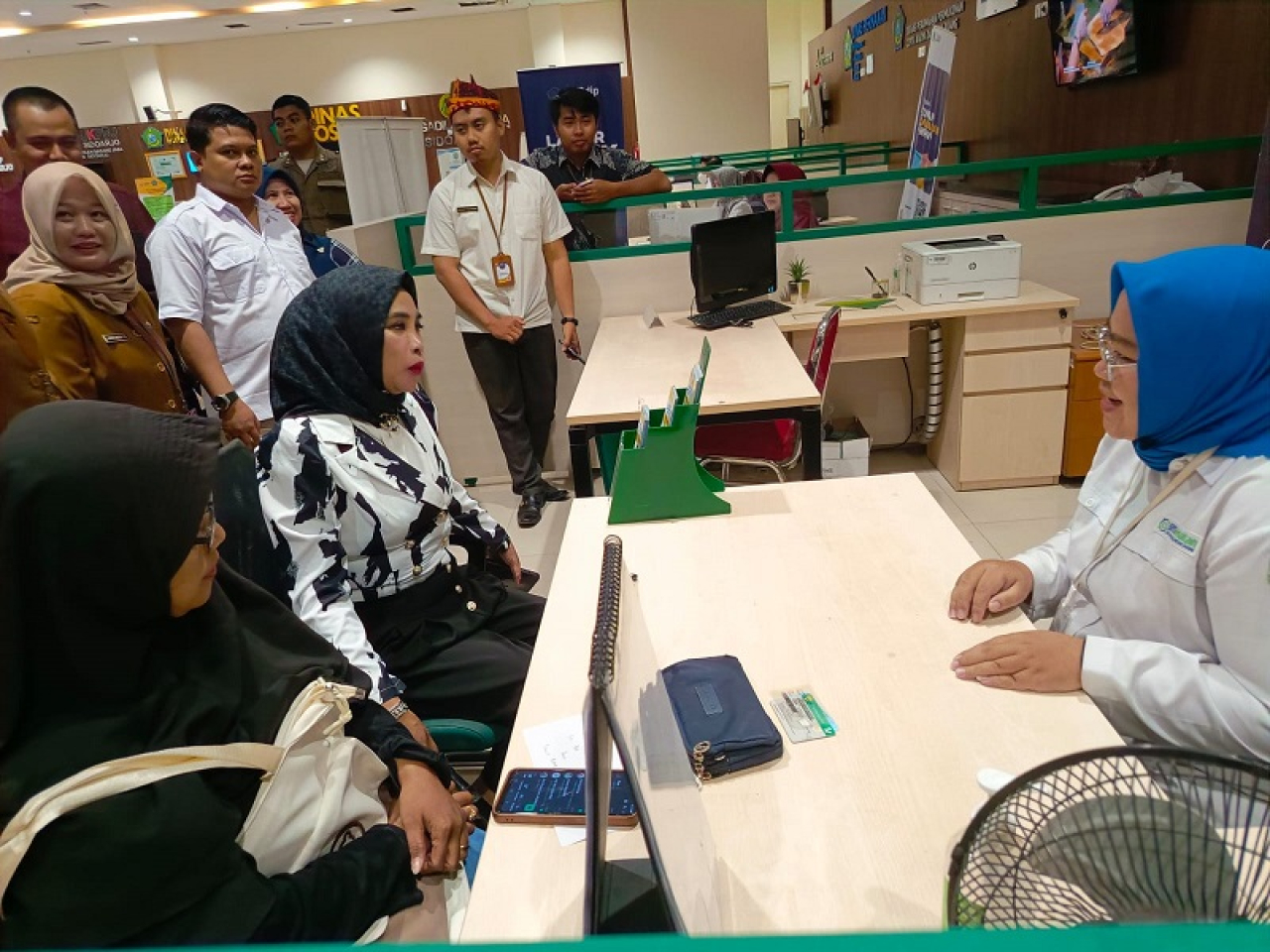 Dalam sidak di MPP, Wabup Hj Mimik Idayana keliling masuk ke pelayanan online dan menyapa serta menanyai warga yang mengurus surat yang dibutuhkan.