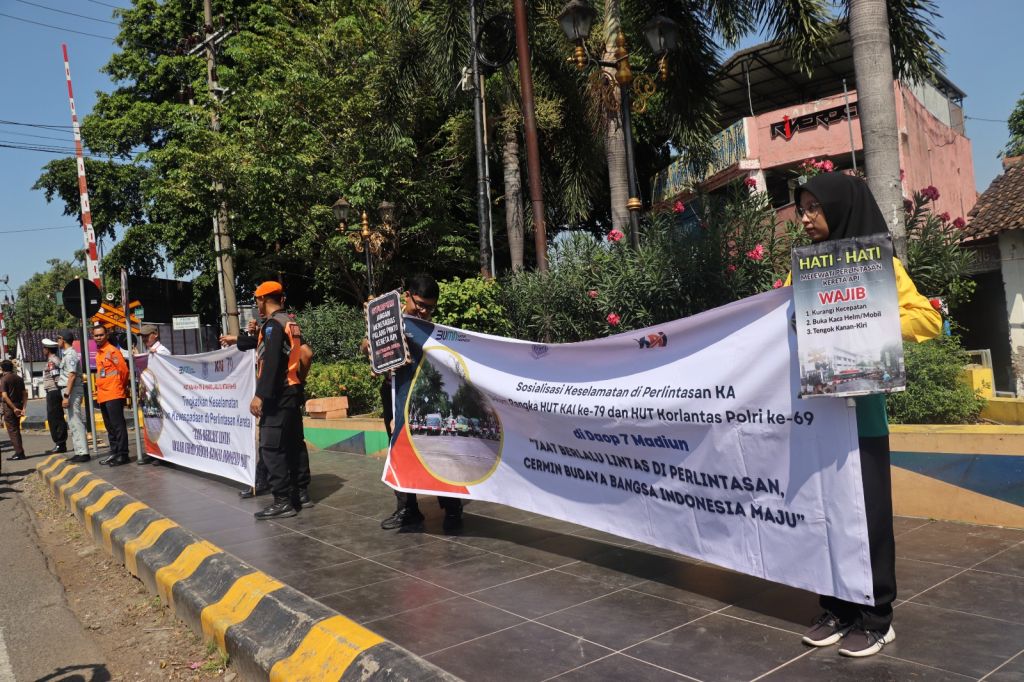 Rakhmad Zaenul menambahkan bahwa PT KAI Daop 7 Madiun telah menjalin kolaborasi dengan berbagai pihak baik Pemerintah Kabupaten/Kota yang memiliki perlintasan KA ataupun kewilayahan juga menggandeng Komunitas Pecinta Kereta (Raigonds) melakukan sosialisasi keselamatan di perlintasan di seluruh perlintasan sebidang KA wilayah Daop 7 Madiun.
