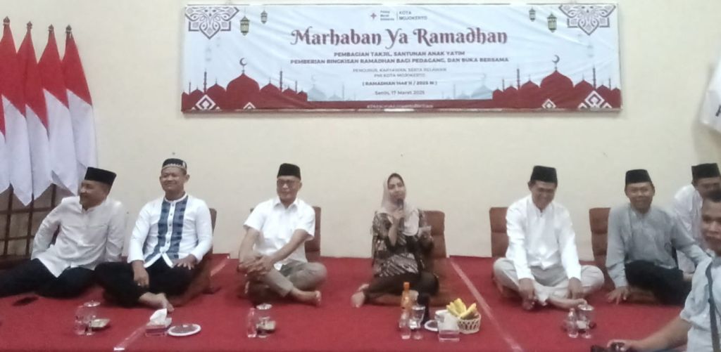 SURABAYAPAGI.COM, Mojokerto - PMI Kota Mojokerto menggelar acara pembagian takjil, santunan anak yatim, pemberian bingkisan ramadhan bagi pedagang dan buka puasa bersama pengurus karyawan serta relawan PMI se-Kota Mojokerto.