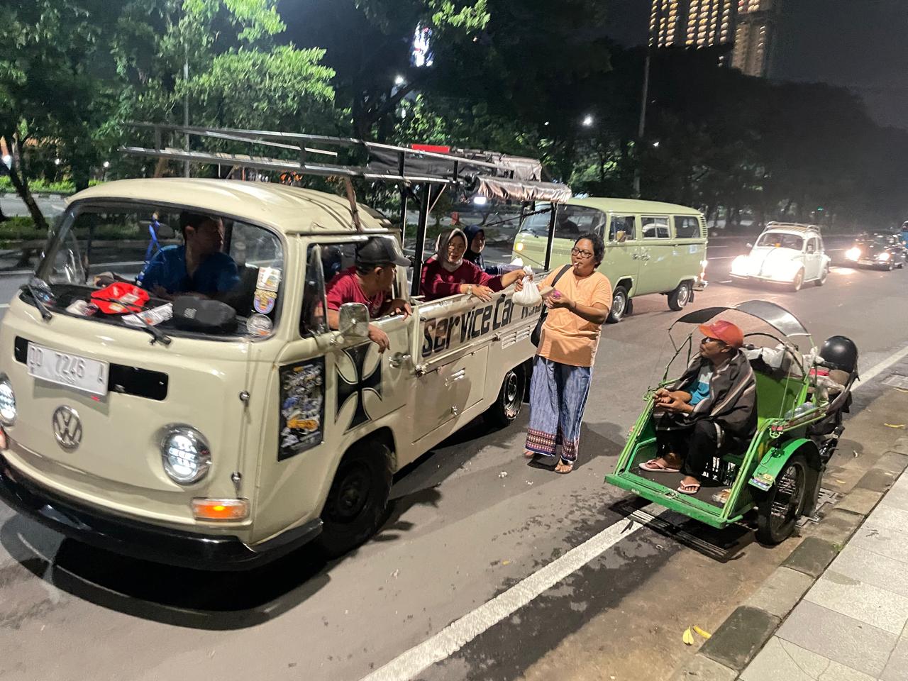 Aksi berbagi ini melibatkan sekitar 50 mobil VW berbagai tipe, mulai dari VW Beetle klasik, VW Kombi, hingga VW Safari, yang berkeliling kota untuk mendistribusikan bantuan.