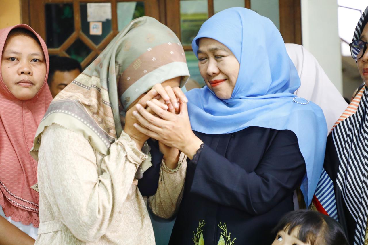 Gubernur Khofifah mendatangi dua rumah duka keluarga korban yang berlokasi di Kabupaten Sidoarjo dan Kabupaten Mojokerto.