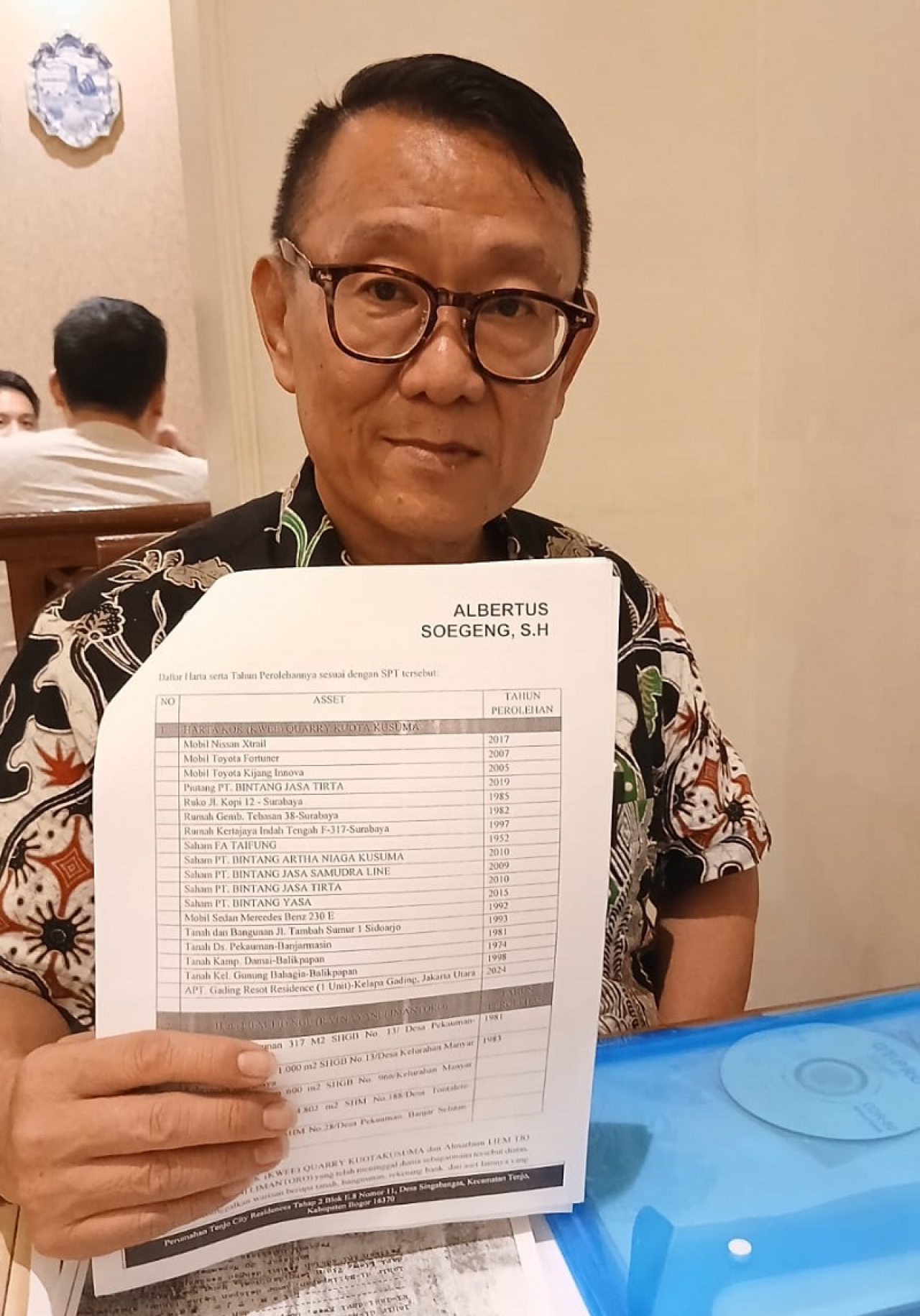 “Kami menduga aset-aset itu tidak segera dibagikan karena telah dijadikan jaminan utang ke bank. Bahkan ada indikasi telah dialihkan tanpa persetujuan ahli waris lainnya,” ujar Albertus Soegeng dalam keterangannya di persidangan.