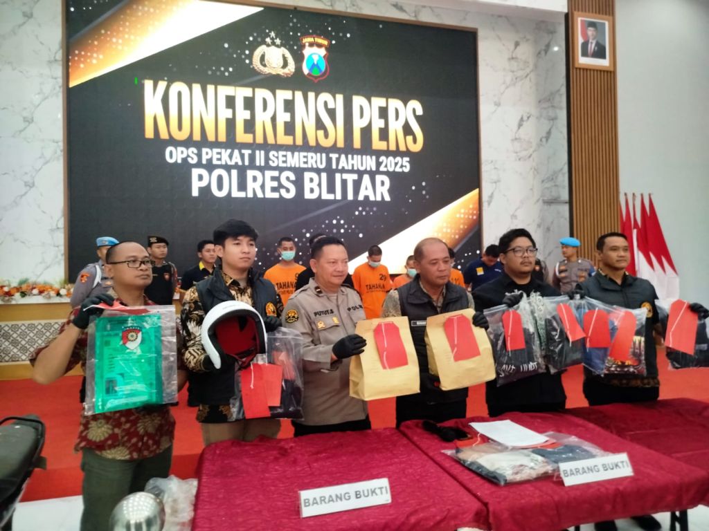 "Benar, dalam rangka Operasi Pekat II Semeru 2025 ini, sejak awal Bulan Mei sampai 14 Mei 2025, telah berhasil sukses ungkap 5 kasus di wilayah Hukum Polres Blitar, dalam kegiatan yang merupakan target kita sejak Operasi Pekat Semeru 2025, dengan beberapa tersangka, diantaranya 9 orang kelompok ormas," terang AKP Momon pada wartawan Sabtu (17/5) sore.