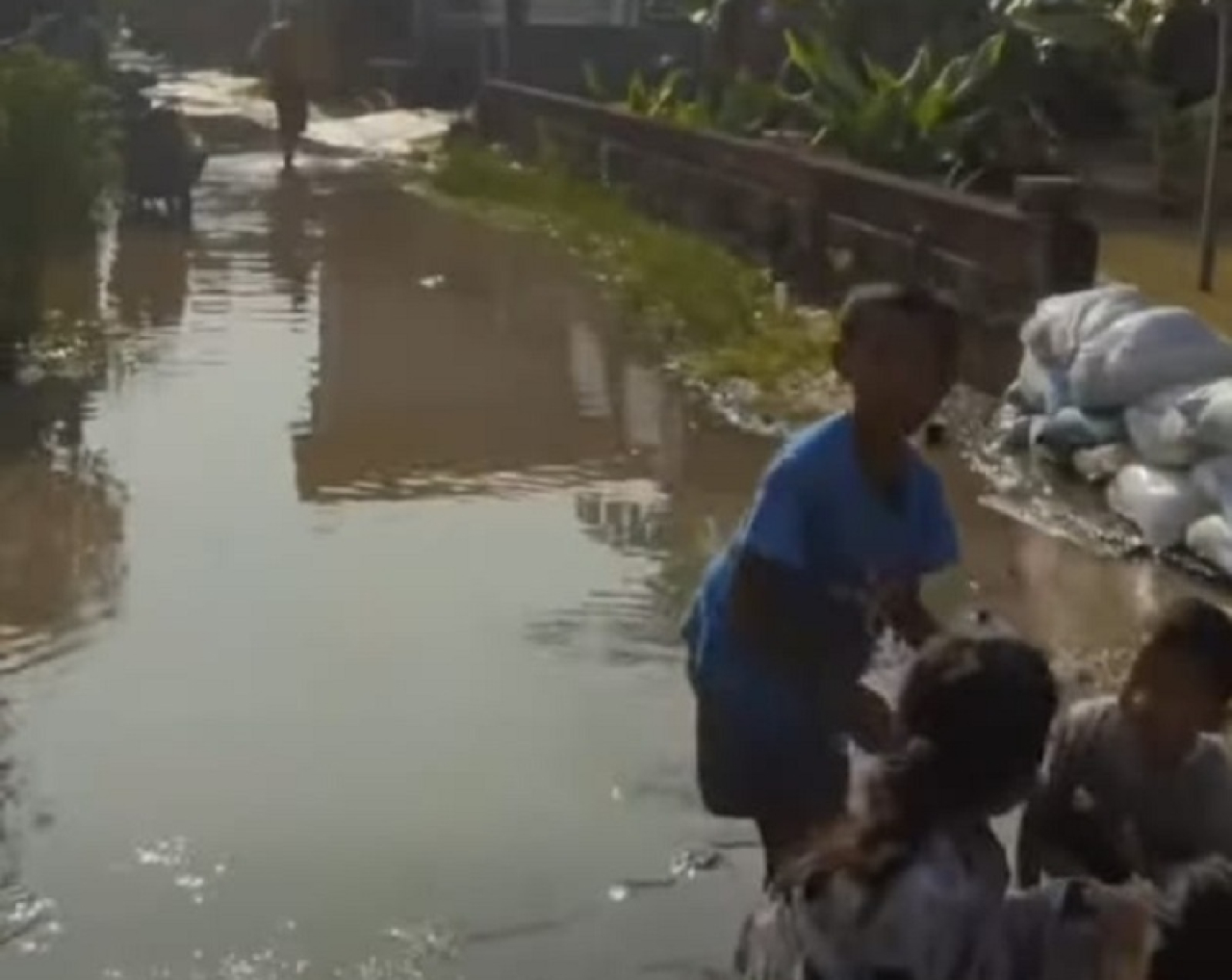 SURABAYAPAGI.com, Lamongan - Debit air sungai Bengawan Solo terus naik, seiring dengan tingginya intensitas hujan dan kiriman air dari hulu, karuan saja sejumlah desa di wilayah di Lamongan terdampak banjir dan menggenangi sejumlah rumah, fasilitas umum dan jalan desa.