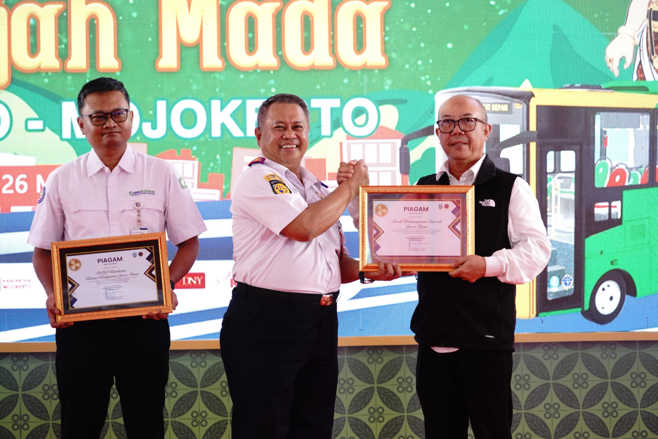 Bertempat di Terminal Mojosari Mojokerto, piagam tersebut diserahkan oleh Kepala Dinas Perhubungan Provinsi Jawa Timur Dr. Nyono dan diterima oleh Direktur Bisnis Mikro, Ritel & Usaha Syariah Bank Jatim R. Arief Wicaksono dalam acara Peresmian Operasional Bus Trans Jatim Koridor VI (Mojokerto - Sidoarjo). Turut hadir juga dalam kesempatan tersebut Gubernur Jawa Timur Khofifah Indar Parawansa dan Bupati Mojokerto Al-Barra.