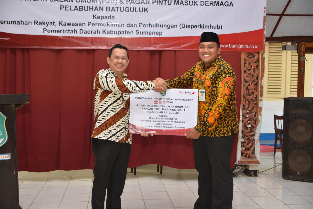 Pada hari yang sama, Bank Jatim juga telah menyerahkan bantuan CSR untuk Pulau Kangean, Kabupaten Sumenep. Bantuan yang diberikan berupa 4 unit penerangan jalan umum dan pagar pintu masuk Pelabuhan Batu Guluk Pulau Kangean. CSR tersebut diserahkan secara simbolis oleh Pemimpin Bank Jatim Cabang Kangean Yudhistira Januar Sadikin kepada Camat Arjasa Aynizar Sukma.