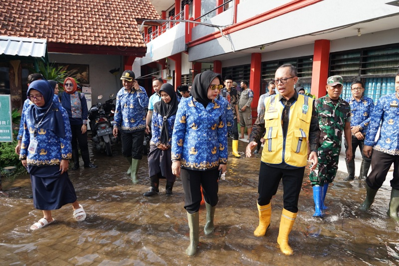 Selama sidak, Hj. Mimik Idayana beserta rombongan meninjau kondisi sungai dan gorong-gorong di sekitar sekolah. Pihaknya juga berkoordinasi langsung dengan Dinas PUBMSDA untuk segera mengambil langkah teknis guna mengurangi debit air, salah satunya dengan memaksimalkan alat pompa air yang tersedia.