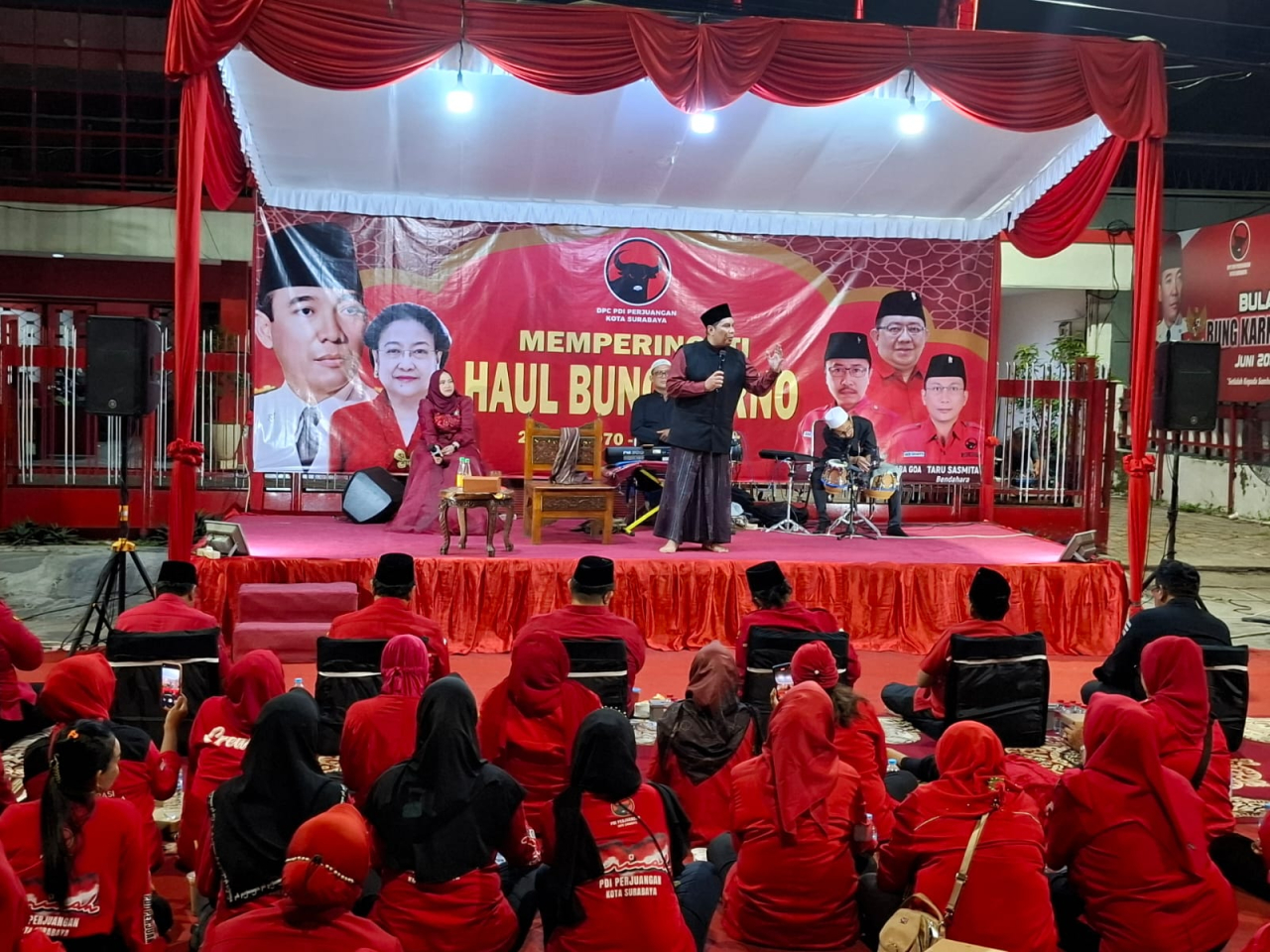 SURABAYAPAGI.COM, Surabaya - DPC PDI Perjuangan Kota Surabaya mengelar peringatan Haul Bung Karno ke-55 di kantor DPC PDIP Surabaya, Sabtu malam (21/6). Acara berjalan secara religius dan khidmat. Selain kader, acara ini dihadiri berbagai elemen masyarakat, termasuk tokoh agama dan organisasi keagamaan lintas iman yang tergabung dalam FKUB Kota Surabaya.