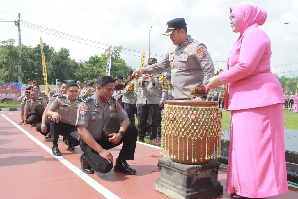 Rangkaian kegiatan itu diawali dengan upacara kenaikan pangkat, dilanjutkan dengan prosesi penyematan pangkat baru oleh para istri anggota yang tergabung dalam Bhayangkari, serta diakhiri dengan acara tasyakuran bersama sebagai bentuk rasa syukur dan kebersamaan, sebelumnya secara sakral para anggota yang naik pangkat menerima guyuran air bunga oleh Kapolres Blitar dan di lanjut oleh istri istri anggota yang naik pangkat, menandai rasa syukur atas anugerah yang diterima atas pengabdian dan dedikasi sebagai anggota Polisi.