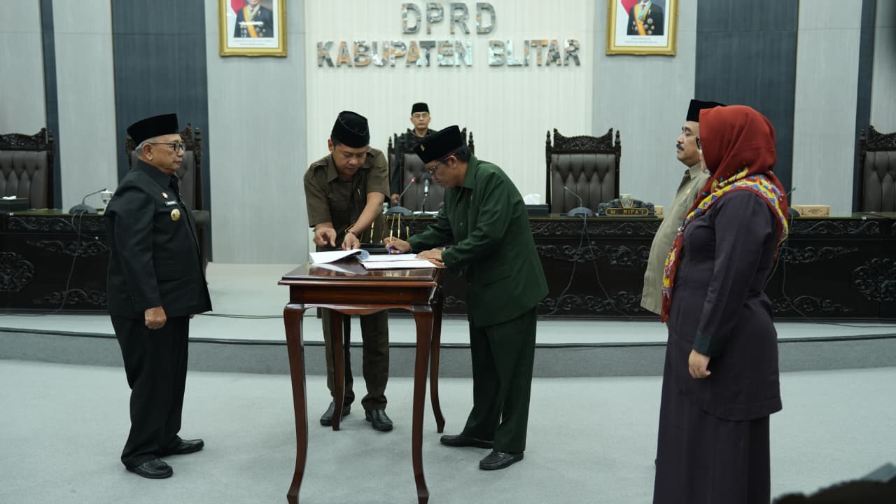 "Persetujuan ini bukan akhir tapi merupakan awal evaluasi dan perbaikan untuk catatan perhatian kami kedepannya," terang Bupati Blitar Riyanto menanggapi usulan usulkan DPRD. Les/Humas DPRD Kab Blitar