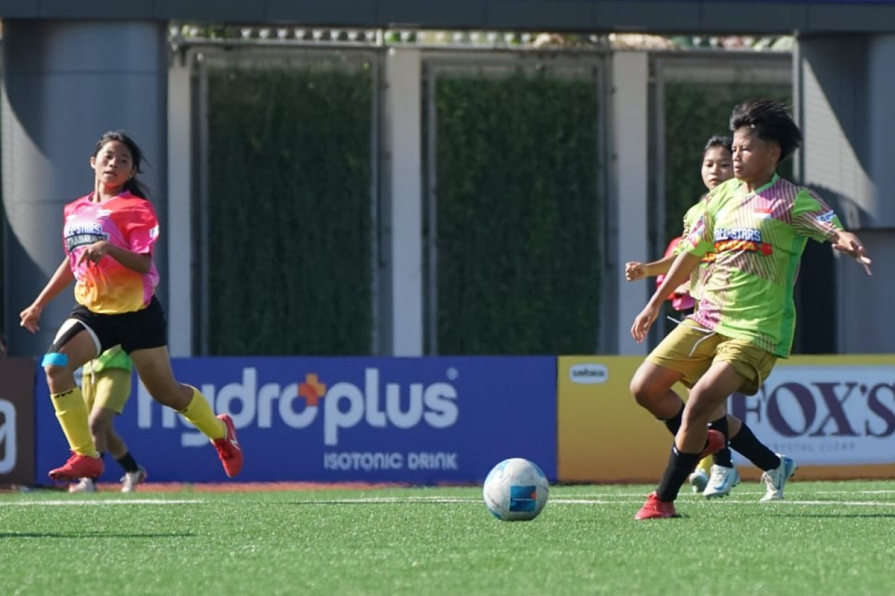 Pasca pengadil lapangan Arief Syaefuddin meniup peluit kick-off babak pertama, pemain depan All Stars Jakarta Albianca Raula yang juga jebolan MilkLife Soccer Challenge langsung memberikan umpan lambung ke tengah pertahanan All Stars Surabaya.