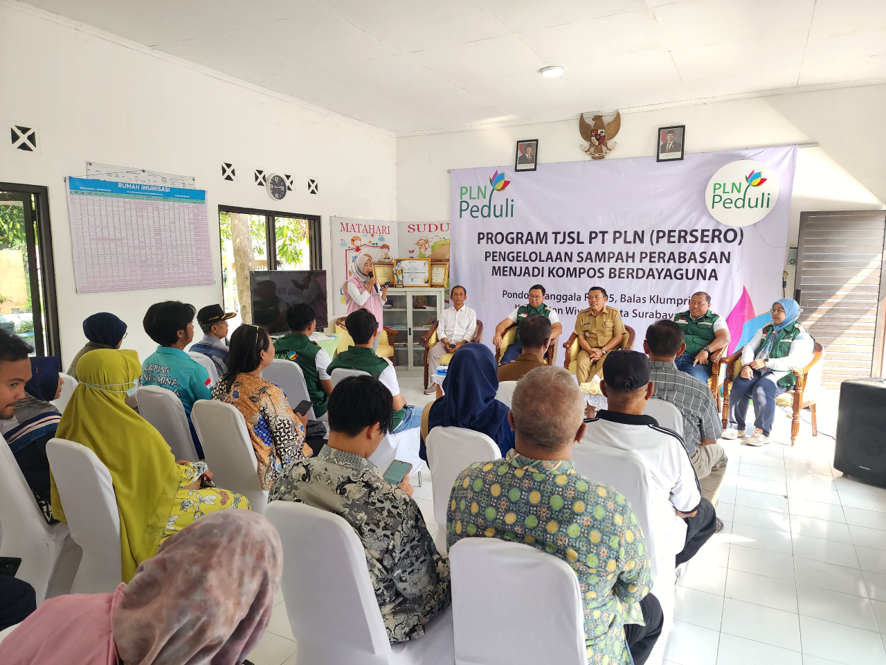 PLN UIT JBM memberikan bantuan TJSL berupa fasilitas untuk pengelolaan sampah sisa perabasan menjadi sampah kompos yang bermanfaat bagi warga di Kelurahan Balas Klumprik Surabaya.
