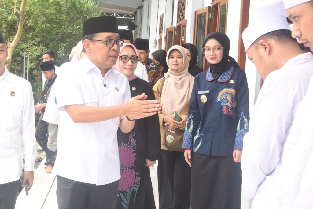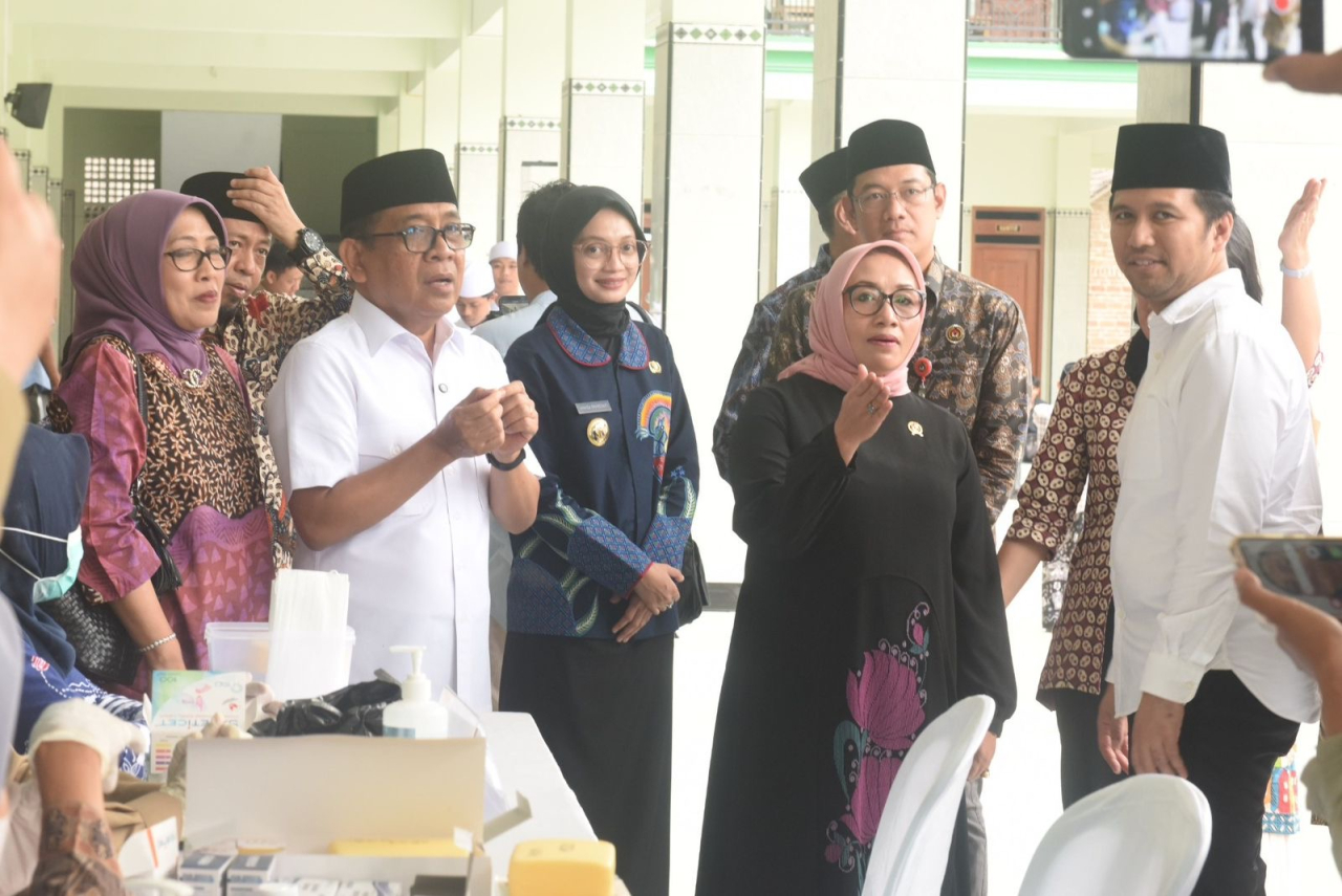 SURABAYAPAGI.COM, Kediri - Wali Kota Kediri Vinanda Prameswati bersama Wakil Gubernur Jawa Timur Emil Elestianto Dardak mendampingi Menteri Koordinator Bidang Pembangunan Manusia dan Kebudayaan (Menko PMK) Pratikno dan Menteri Pemberdayaan Perempuan dan Perlindungan Anak (PPPA) Arifatul Choiri Fauzi meninjau pelaksanaan Program Pemeriksaan Kesehatan Gratis. Lokasi Pemeriksaan Kesehatan Gratis ini ada di Pondok Pesantren Lirboyo dan Pondok Pesantren Al-Falah Ploso, Minggu (13/7/2025). Pemeriksaan Kesehatan Gratis (PKG) ini dicanangkan oleh Presiden Prabowo Subianto.