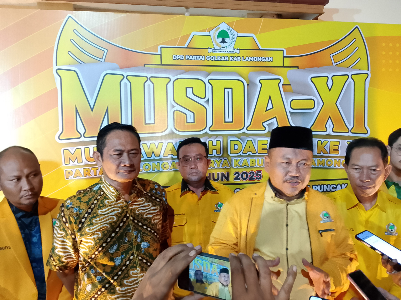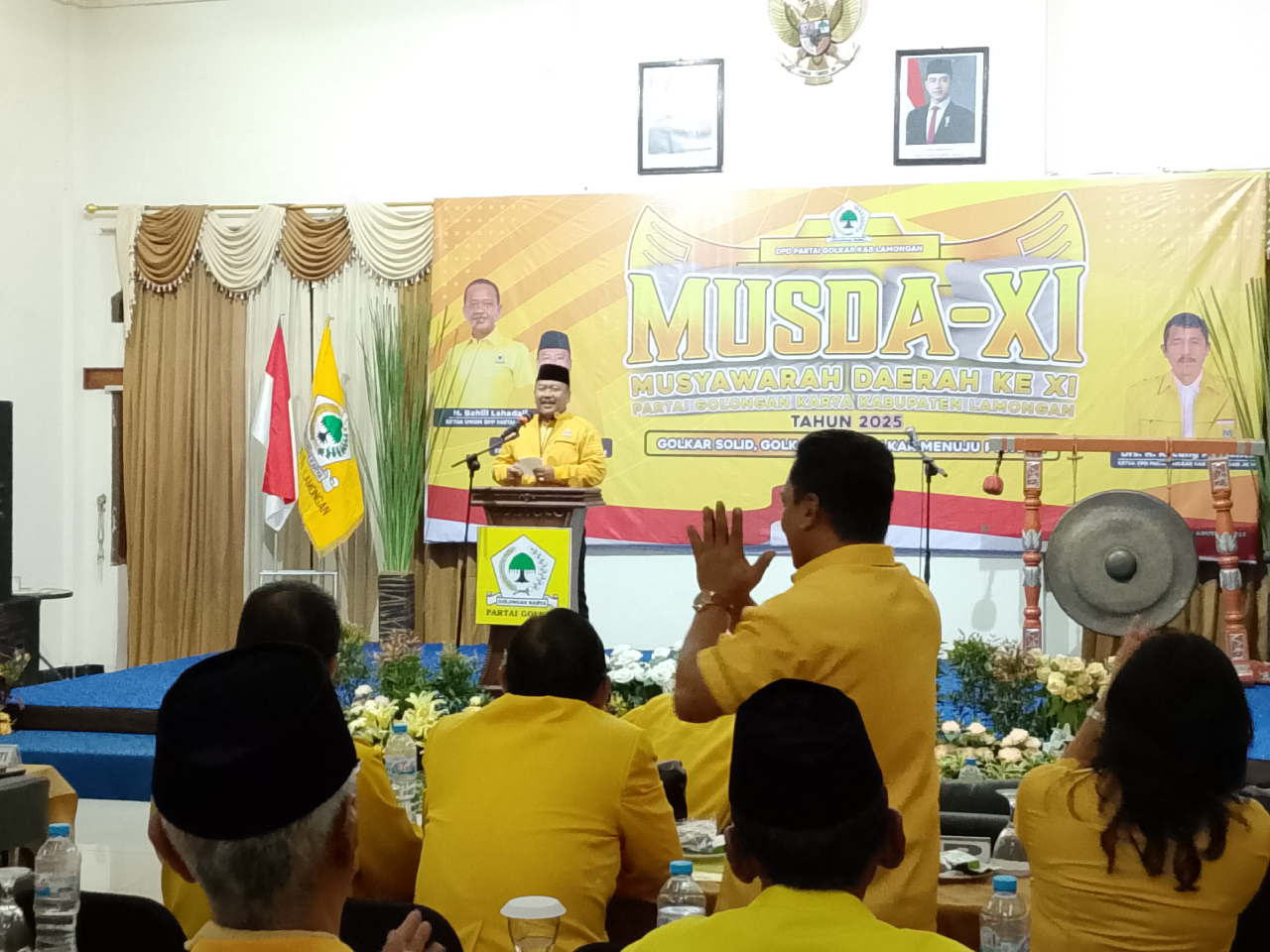 Pembukaan Musda DPD Golkar Lamongan dilanjut dengan pemukulan gong sebanyak 4 kali; yang disaksikan oleh Bupati Lamongan H. Yuhronur Efendi, Wabup Dirham Akbar Aksara dan ketua DPD Golkar Lamongan periode 2020-2025 Kacung Purwanto.jir