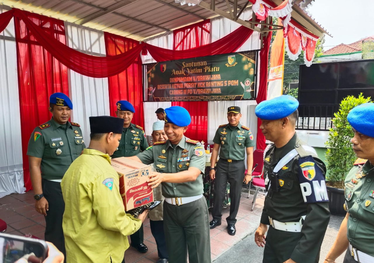 Dalam kesempatan yang sama, Danpomdam juga menyempatkan diri memberikan santunan kepada puluhan anak yatim yang hadir dalam kegiatan tersebut. Hal ini menjadi wujud kepedulian sosial dari jajaran Pomdam V/Brawijaya kepada masyarakat sekitar.