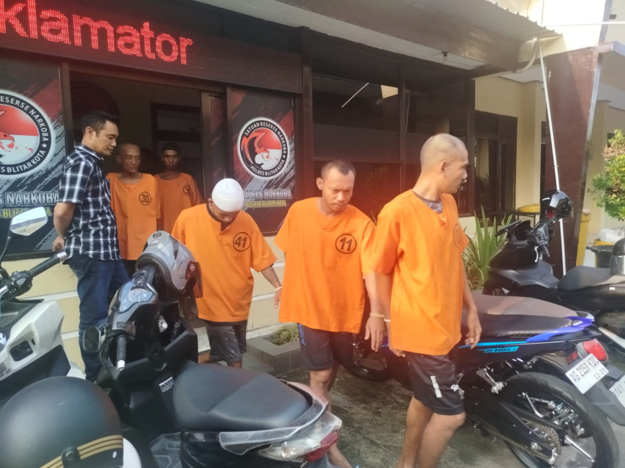Untuk kelima tersangka yang diamankan yakni, FD alias Oger (26), warga kelurahan Karangsari Kota Blitar yang sehari hari buruh angkut telur, EP alias Toyek (26), warga Kec.Kandat Kabupaten Kediri, MKA alias Tolol (28), wiraswasta, warga Kec. Wonodadi Kab. Blitar, AB alias Agus alias Kletik (47), tukang parkir, warga Tamanan, Tulungagung. dan MJ alias Mbah No (43), kuli bangunan, warga Karangrejo, Tulungagung.