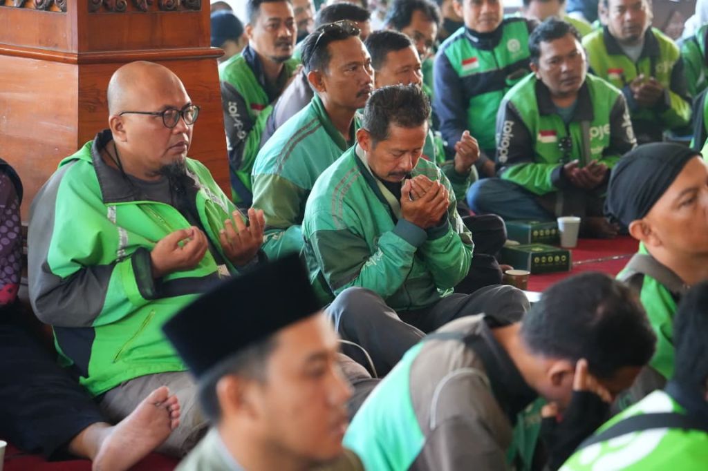 Selain doa bersama, para pengemudi ojol juga diajak untuk sarapan bersama dengan para pimpinan daerah Kota Mojokerto yang membaur di antara mereka.