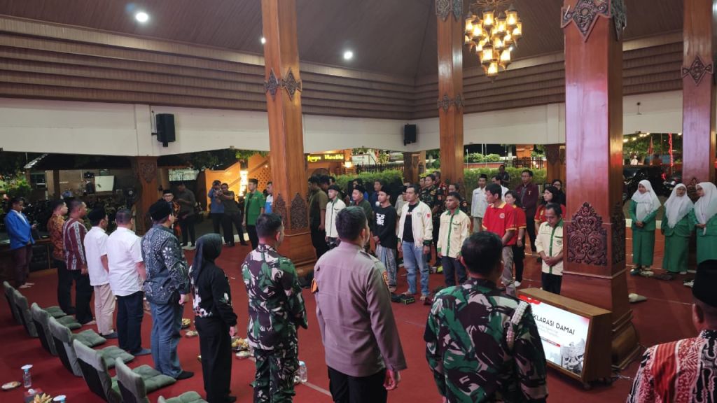 SURABAYA PAGI.COM, Mojokerto – Komitmen Wali Kota Mojokerto Ika Puspitasari bersama jajaran Forkopimda Kota Mojokerto untuk menjaga kondusifitas bersambut dengan organisasi lintas agama dan kepemudaan Kota Mojokerto. Komitmen tersebut tercermin dalam Deklarasi Damai yang dilaksanakan di Pendapa Sabha Kridatama Rumah Rakyat pada Selasa (2/9).