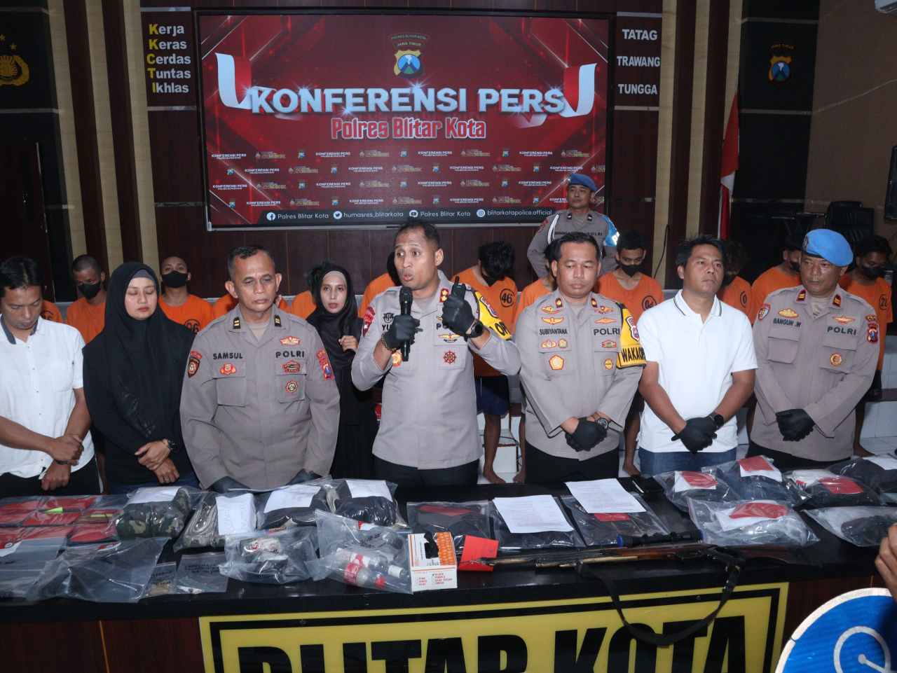 Hal itu disampaikan Kapolres Blitar Kota AKBP Titus Yudha Uly S.IK M.Si dalam rilis nya (Rabu 10 September 2025) sore pada wartawan, lebih dalam AKBP Yudha menyampaikan, dari ke 37 pelaku yang kini dalam proses hukum ada yang menggunakan senjata Angin kaliber 4.5, dan 3 buah bondet yang sudah di persiapkan untuk aksinya dalam penyerangan terhadap petugas, dan kini warga Kelurahan Turi Kec.Sukorejo Kota Blitar yakni ATG 20 terus di dalami kasusnya.