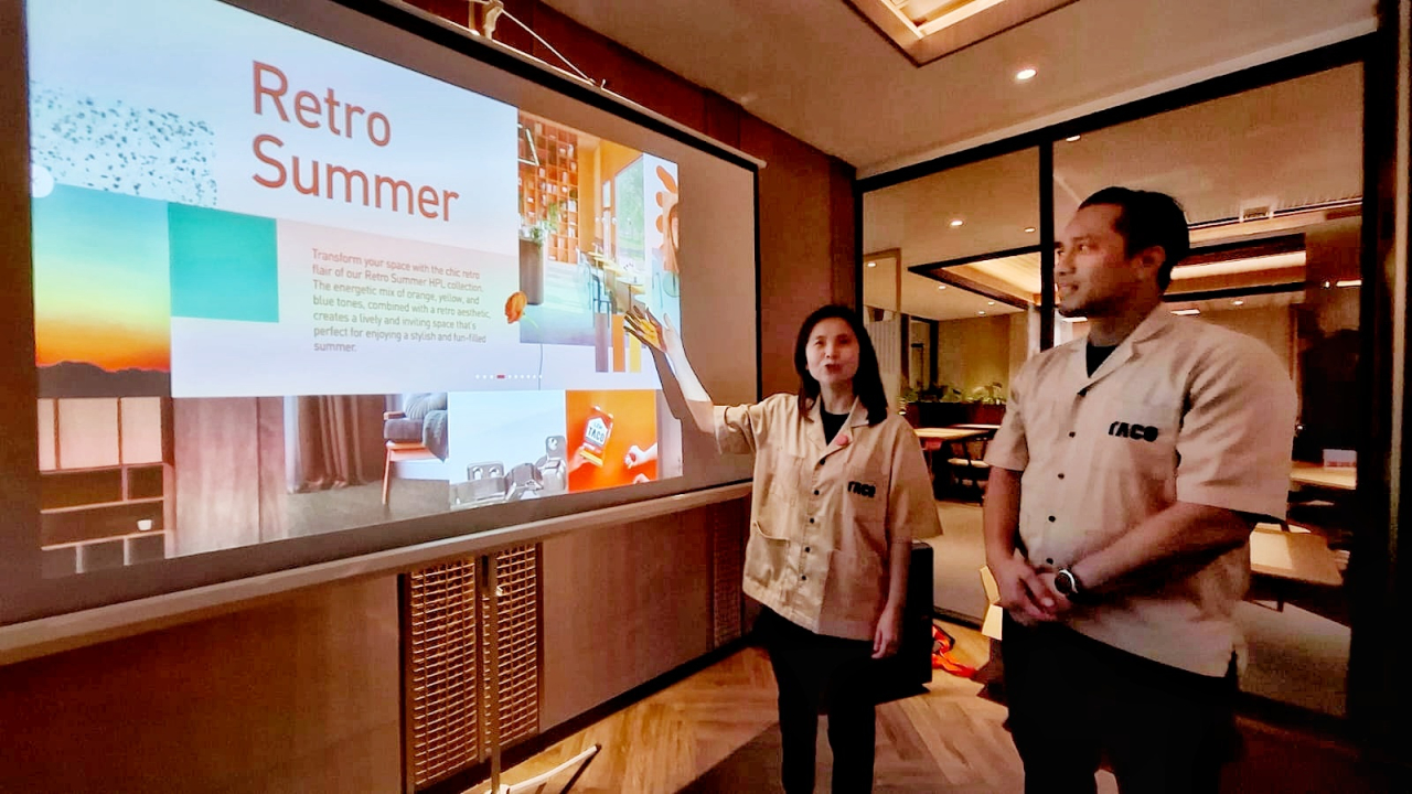 TACO dikenal sebagai penyedia solusi desain ruang menyeluruh, mulai High Pressure Laminates (HPL), hardware, aksesori furnitur, aluminium composite panels, plafon, vinyl-SPC flooring, wall panel hingga adhesive.
